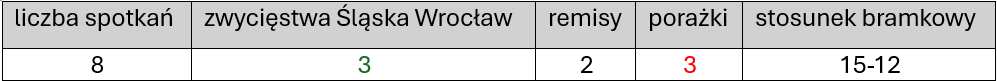 STATYSTKI POJEDYNKÓW ZE ŚLĄSKIEM
