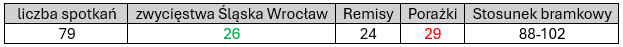 STATYSTKI POJEDYNKÓW ZE ŚLĄSKIEM