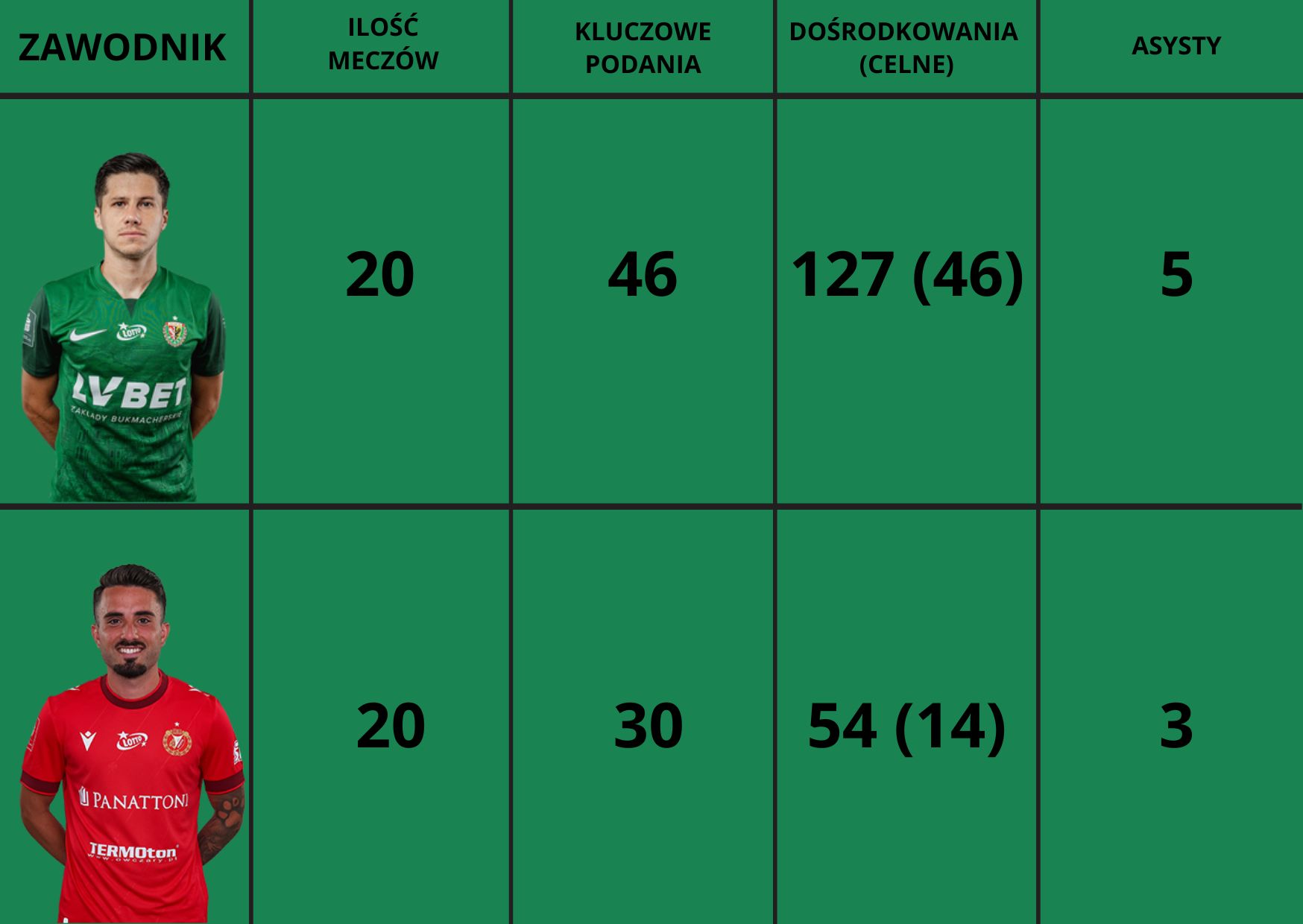 Poniżej dodatkowa garść statystyk z występów obu pomocników w tym sezonie: