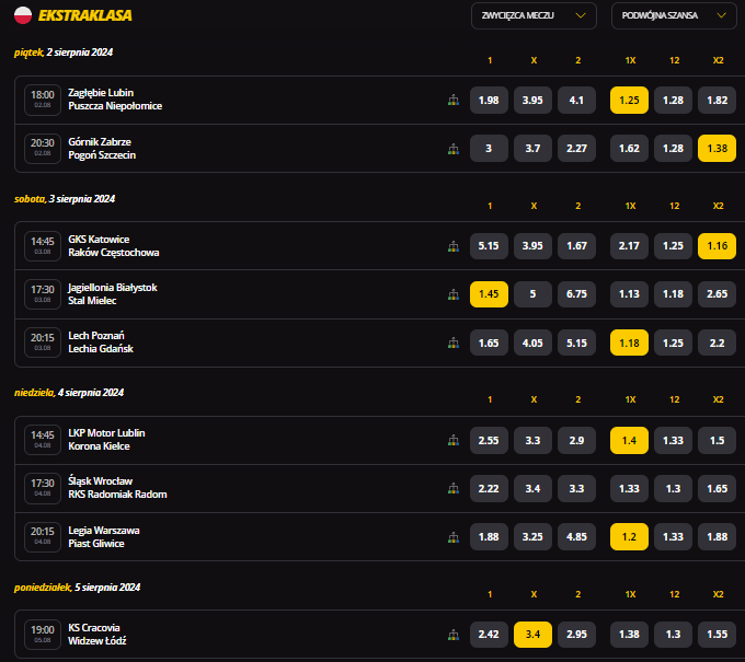 Obecny sezon Ekstraklasy ruszył na dobre, przed nami trzecia kolejka w najwyższej klasie rozgrywkowej w Polsce. Z tej okazji przychodzimy do Was z propozycją naszych przewidywań, typów oraz kursów od LV BET na najbliższą serię gier.